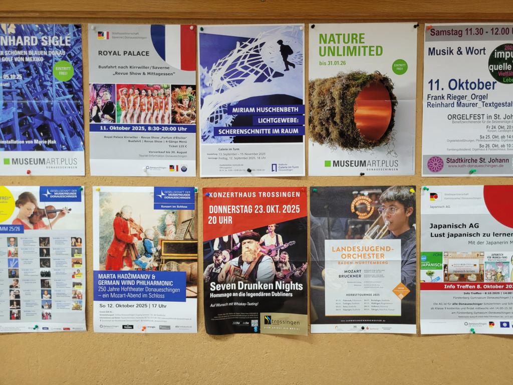 Bei meinem erneuten Besuch zeigt sich Donaueschingen als Stadt, in der Musik sicht- und hörbar zum Alltag gehört. Plakate kündigen Konzerte, Orgelreihen und Festivals an, die Donaueschinger Musiktage bleiben das Herzstück. Doch auch jenseits dieses großen Ereignisses wird in Musikschulen, Ensembles und auf kleinen Bühnen musiziert.